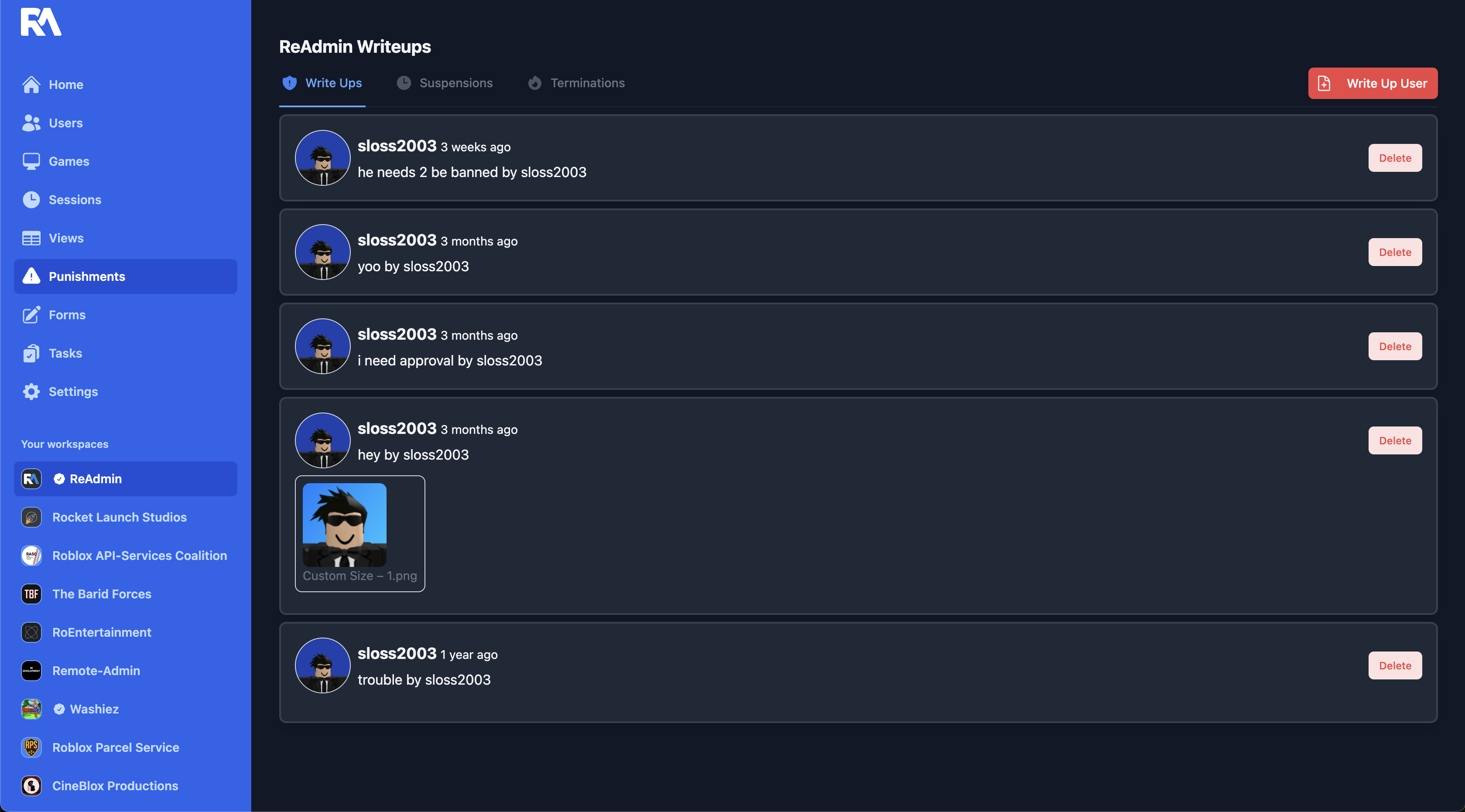 Write ups are like warnings, you can attach evidence. You can opt to notify the user on Discord that they were warned.